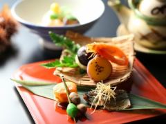 본 시설에서는 계절마다 다양한 춘하추동에 맞춘 회석 요리를 드실 수 있습니다. 약 12품 중에는 야마나시에서 채취한 야채, 고기를 듬뿍 사용해 바다의 물건은 이웃 시즈오카 현의 물건을 당일에 구입 신선한 제품을 드실 수 있도록 요리사가 매일 팔을 흔들고 있습니다. 또한 요리 제공에는 따뜻한 것은 따뜻하고 차가운 것은 식은 상태로 손님에게 드실 수 있도록 유의하고 있습니다.